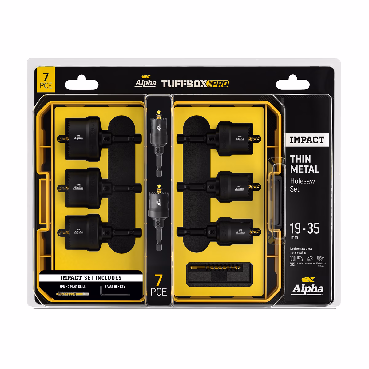 7 Piece | Alpha Impact Thin Metal Tuffbox Pro Holesaw Set