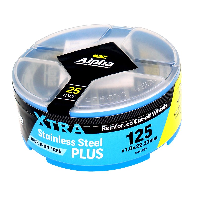 ALPHA STAINLESS STEEL PLUS is the most advanced stainless cutting disc in the market. New manufacturing technology has produced a disc with unparalleled performance and safety features that will maximise efficiencies and reduce costs in your stainless cutting jobs.