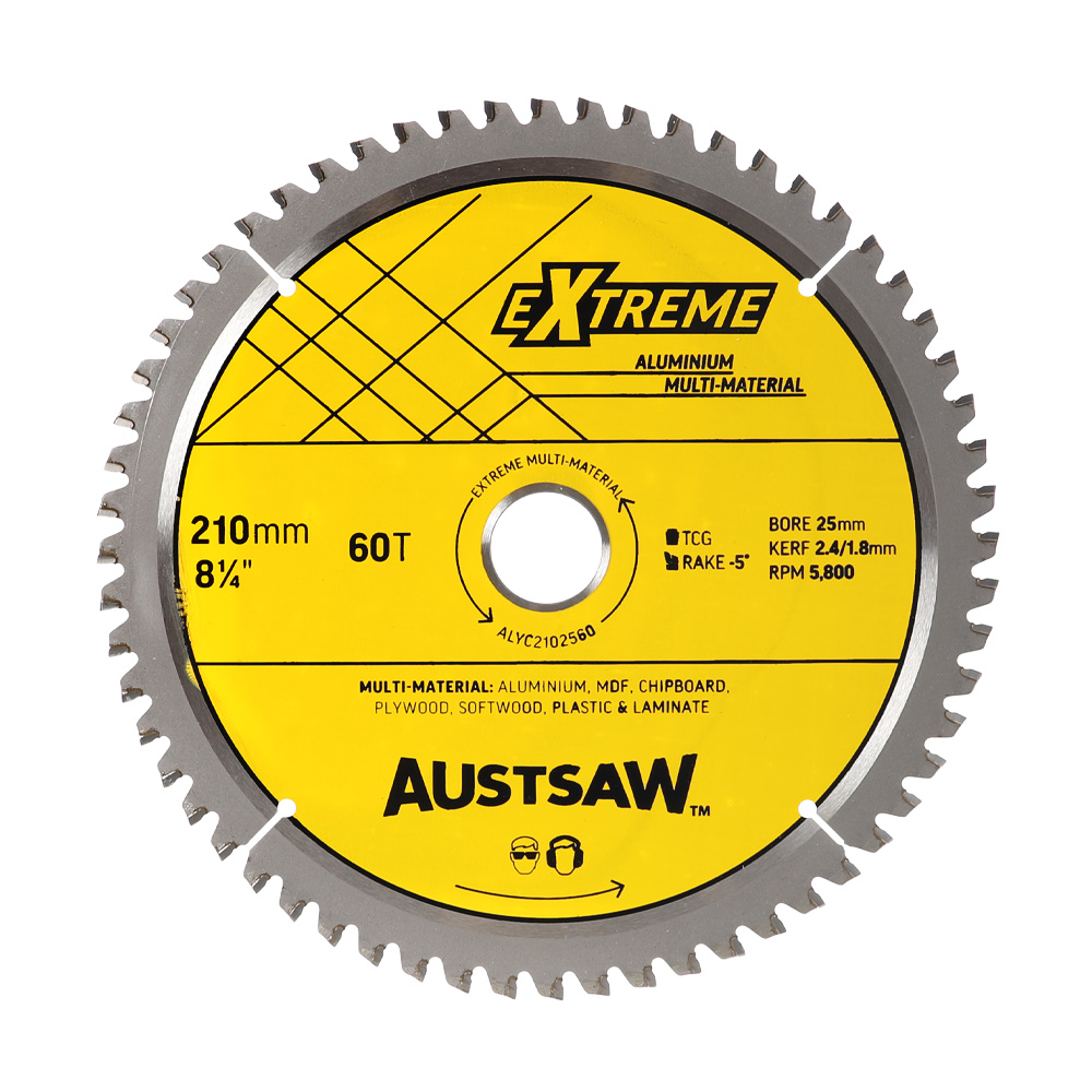 Austsaw – 210mm (8 1/4in) Aluminium Blade Triple Chip – 25/16mm Bore – 60 Teeth