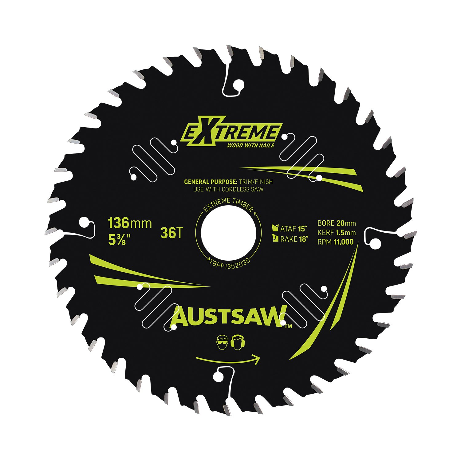 Austsaw Extreme: Wood with Nails Blade 136mm x 20/16 Bore x 36 T Thin Kerf