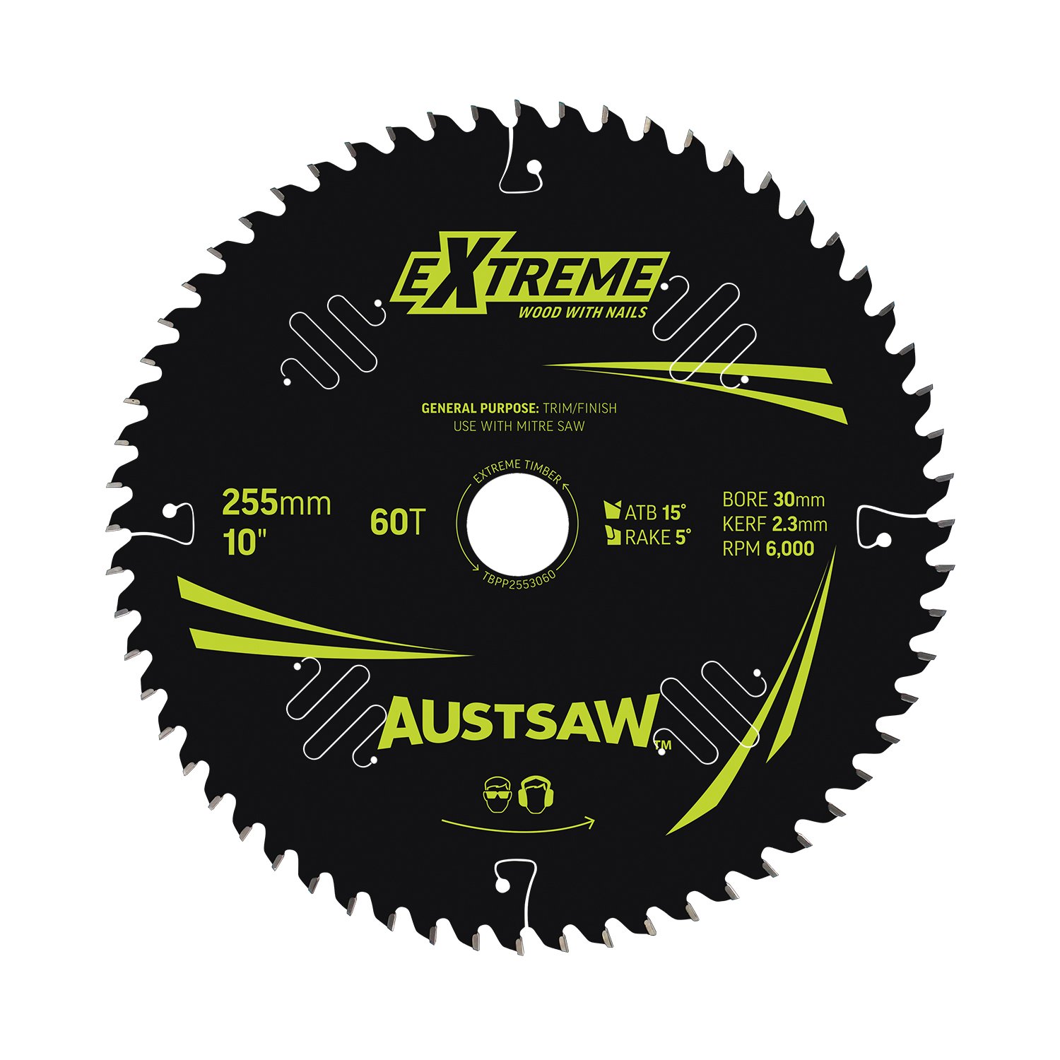 Austsaw Extreme: Wood with Nails Blade 255mm x 30 Bore x 60 T Thin Kerf