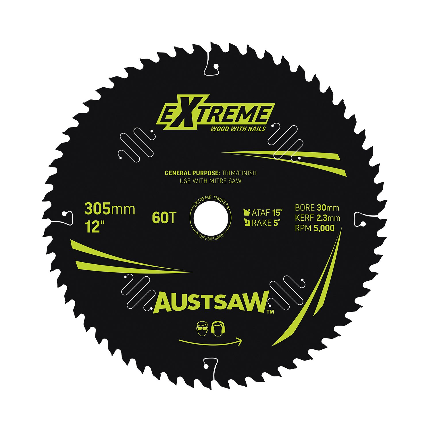 Austsaw Extreme: Wood with Nails Blade 305mm x 30 Bore x 60 T Thin Kerf