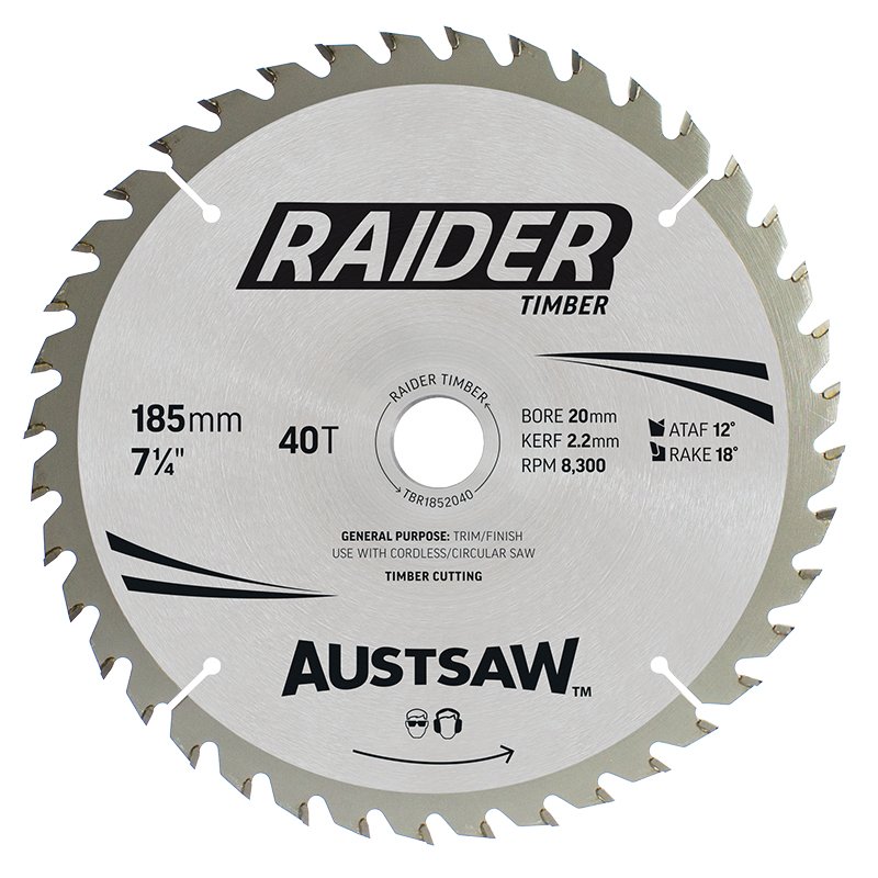 Austsaw Raider Timber Blade 185mm x 20/16 Bore x 40 T