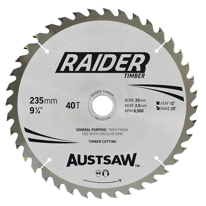 Austsaw Raider Timber Blade 235mm x 25 Bore x 40 T Thin Kerf