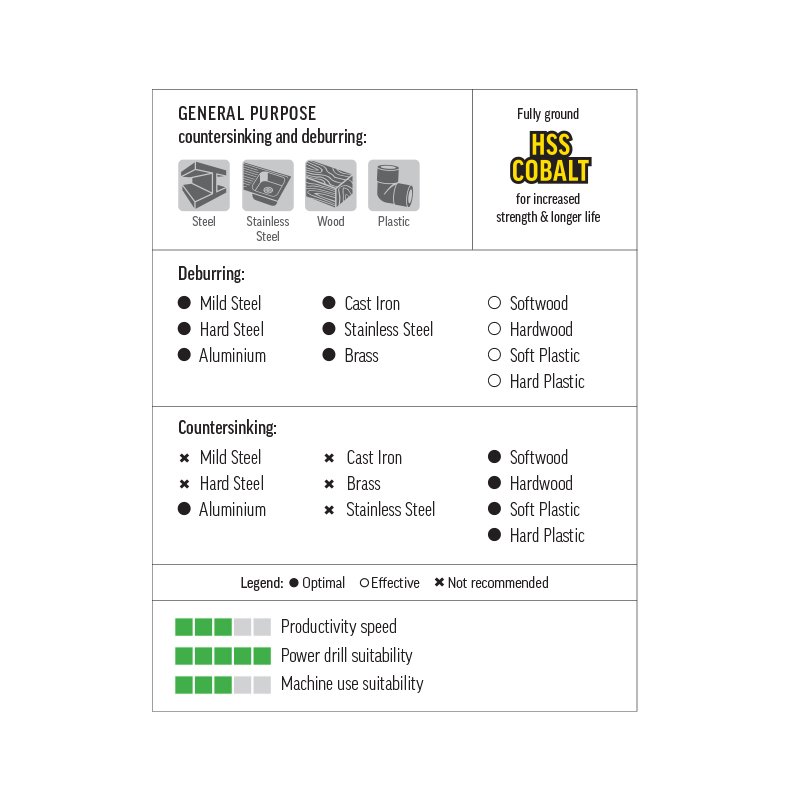 Fully ground M42 HSS Co8 increases strength and countersink life
