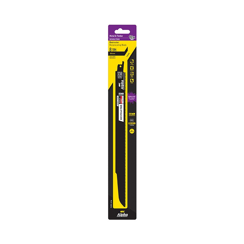 Destructor Demolition – Metal & Timber – Recip Blade, 8 TPI, 300mm – 5 Pack